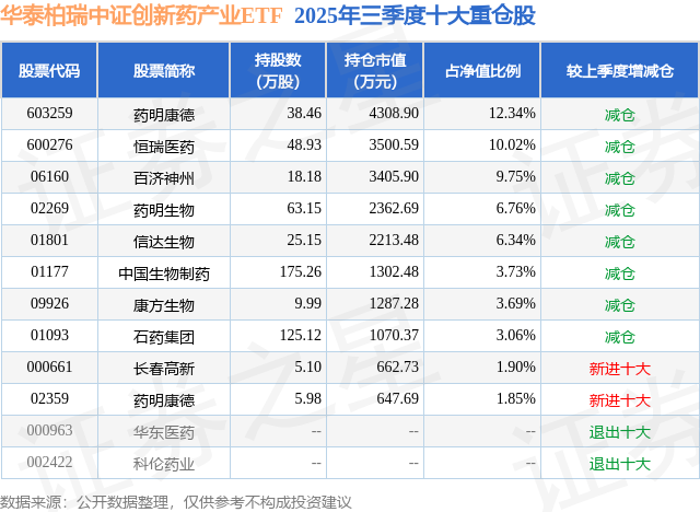 本站音信,日前华泰柏瑞中证立异药产业ETF基金公布三季报,2025年三季度最新限度3.49亿元,季度净值涨幅为32.09%。